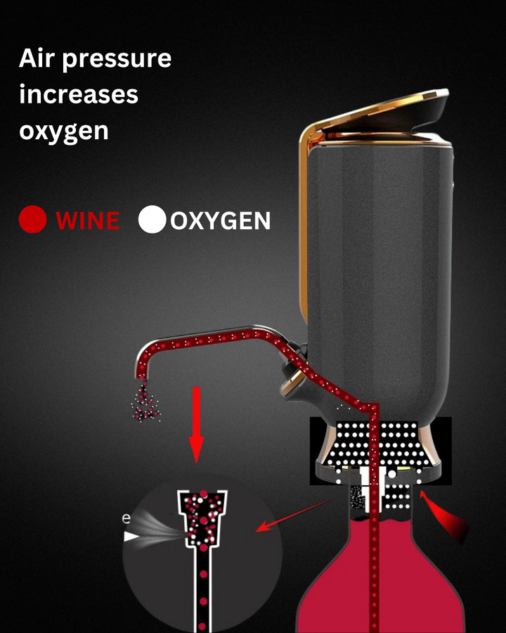 The MyBar wine station utilizes pressurization to infuse oxygen into the wine, effectively reducing bitterness. This process enhances the wine's softness, resulting in a smoother, more enjoyable taste.
