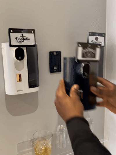 No drilling or tools needed! The MyBar™ Shot-Station Mini includes a wall mount which sticks to walls and more. This means you can create your own floating bar!